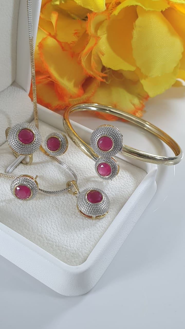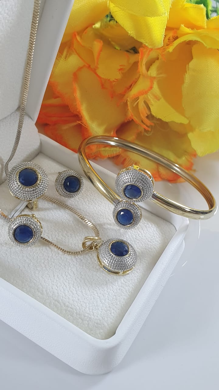 Elegant Indian Zarcon Jewellery Set – Gold-Plated Necklace, Earrings, Ring & Bangle with Diamond Accents