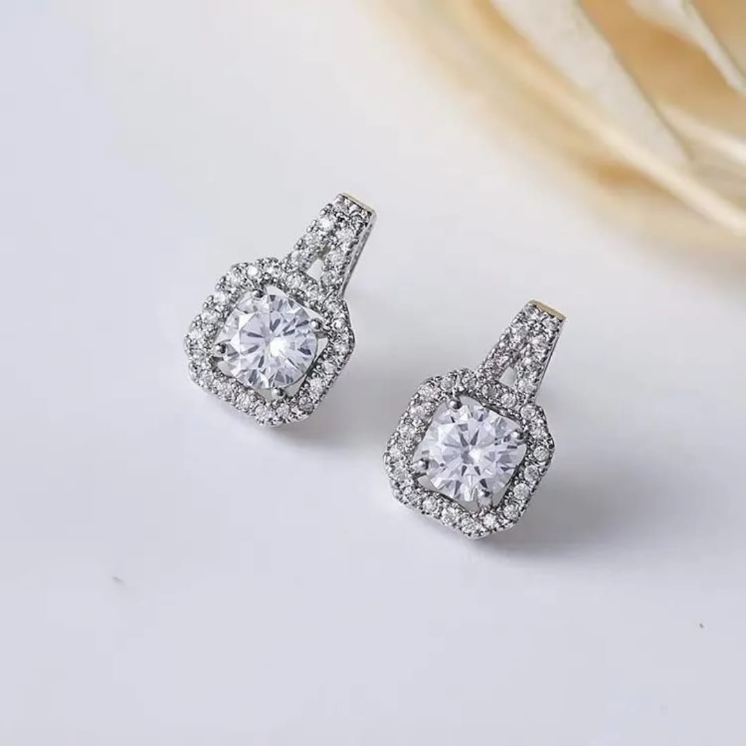 Elegant Silver Plated Jewelry Set – Sparkling Pendant Necklace & Stud Earrings