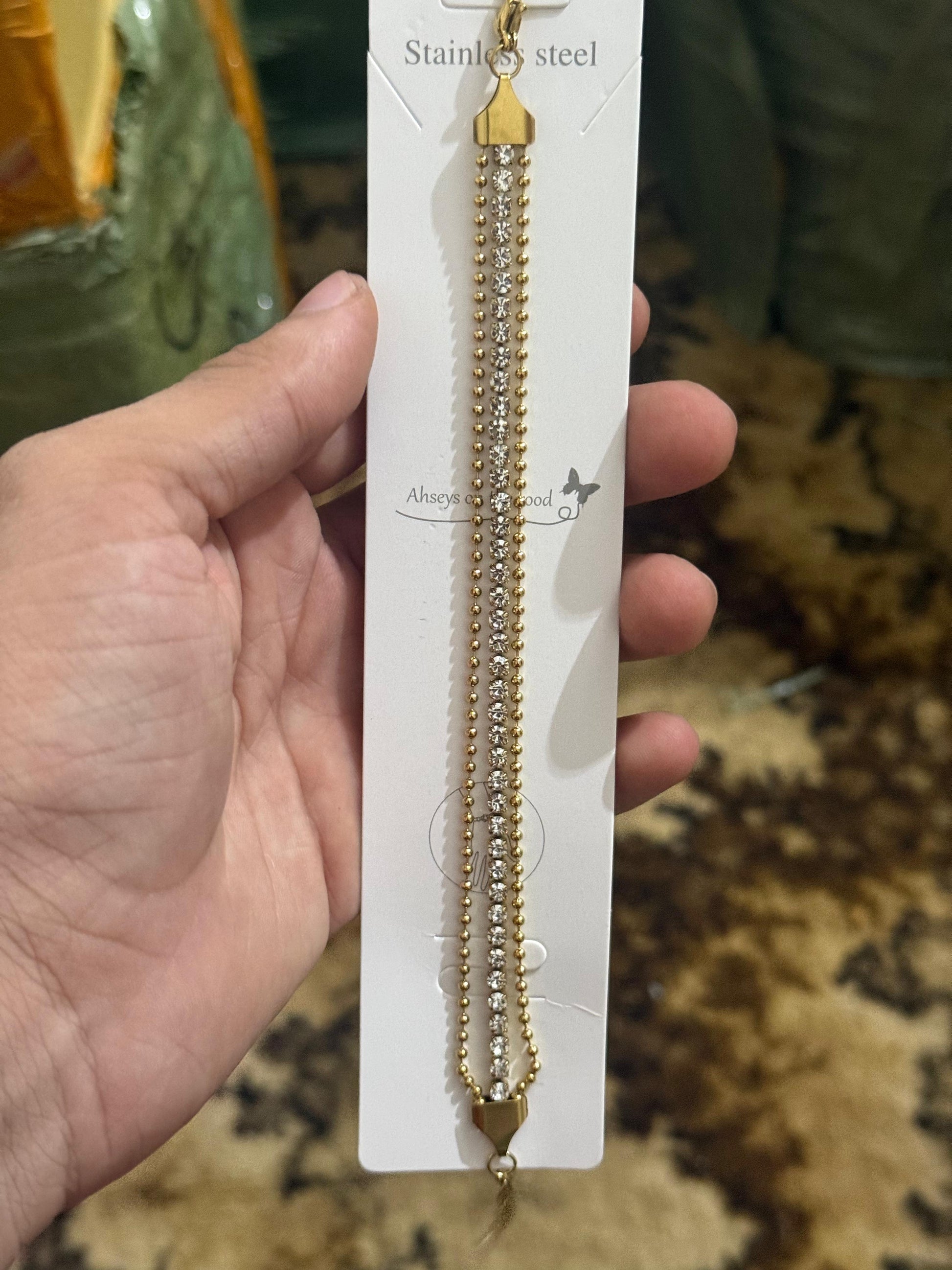 Gold-Tone Double Row Crystal Bracelet – Adjustable Luxury Sparkle