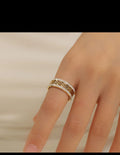 Greek Key Gold-Plated Ring with Rhinestones – Unisex Statement Band