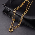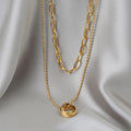 Layered Gold Necklace Set – Chunky Link Chain & Interlocking Ring Pendant Necklace