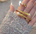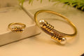 Twisted Cable Pearl Bangle & Ring Set – Gold-Plated Elegance
