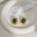 Vintage Green Stone Oval Stud Earrings – Gold Plated Tarnish Free